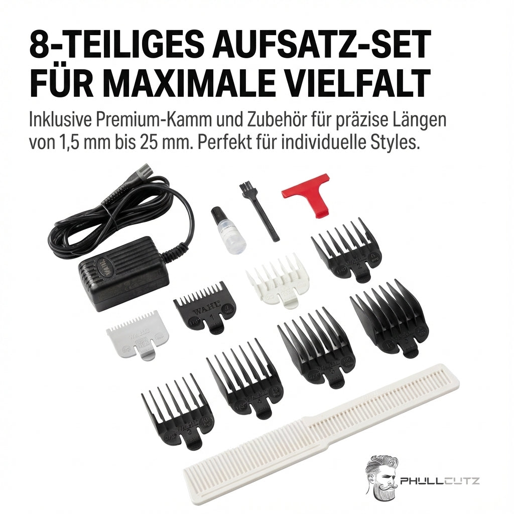 Der Wahl Professional Magic Clip Clipper wird mit einem praktischen Zubehörpaket geliefert, das dir alles bietet, was du für professionelle Schnitte benötigst: