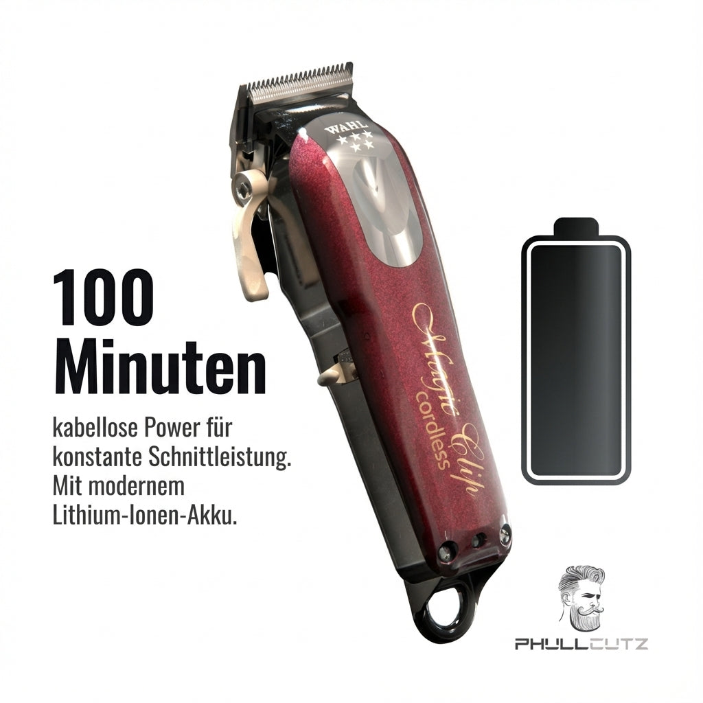 Ausgestattet mit einem leistungsstarken Lithium-Ionen-Akku bietet der Magic Clip eine kabellose Laufzeit von bis zu 100 Minuten und ist in 120 Minuten vollständig aufgeladen. Der langlebige Akku ohne Memory-Effekt garantiert dir eine gleichmäßige, zuverlässige Leistung – ideal für lange Sessions und intensive Arbeitstage. Die Möglichkeit, den Clipper sowohl kabellos als auch im Netzbetrieb zu nutzen, bietet dir zusätzliche Flexibilität im Barbershop.