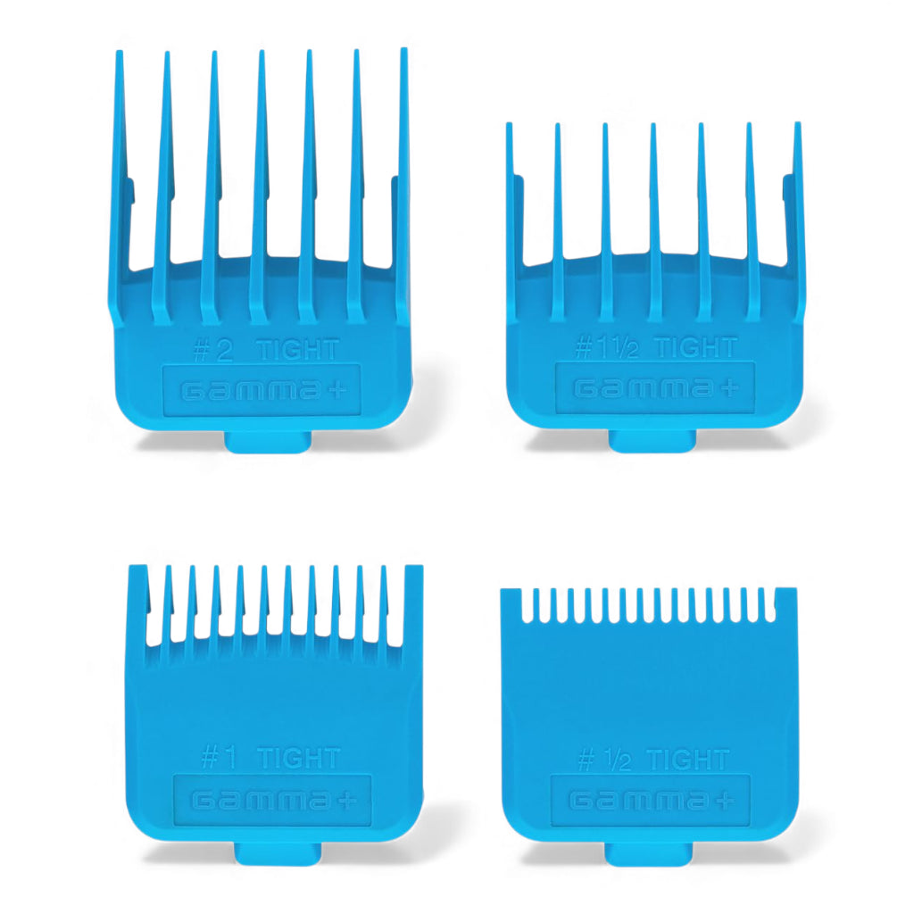 Die Gamma+ Clipper Tight Guards Blau sind speziell entwickelt, um dir als professioneller Friseur oder Barber die beste Kontrolle und Präzision beim Schneiden zu bieten. Mit den feinen Kämmen erreichst du einen noch besseren Schnitt, besonders bei der Verwendung des Hebels in der ½-Position. Das ermöglicht dir, selbst anspruchsvollste Styles mit Leichtigkeit umzusetzen.
