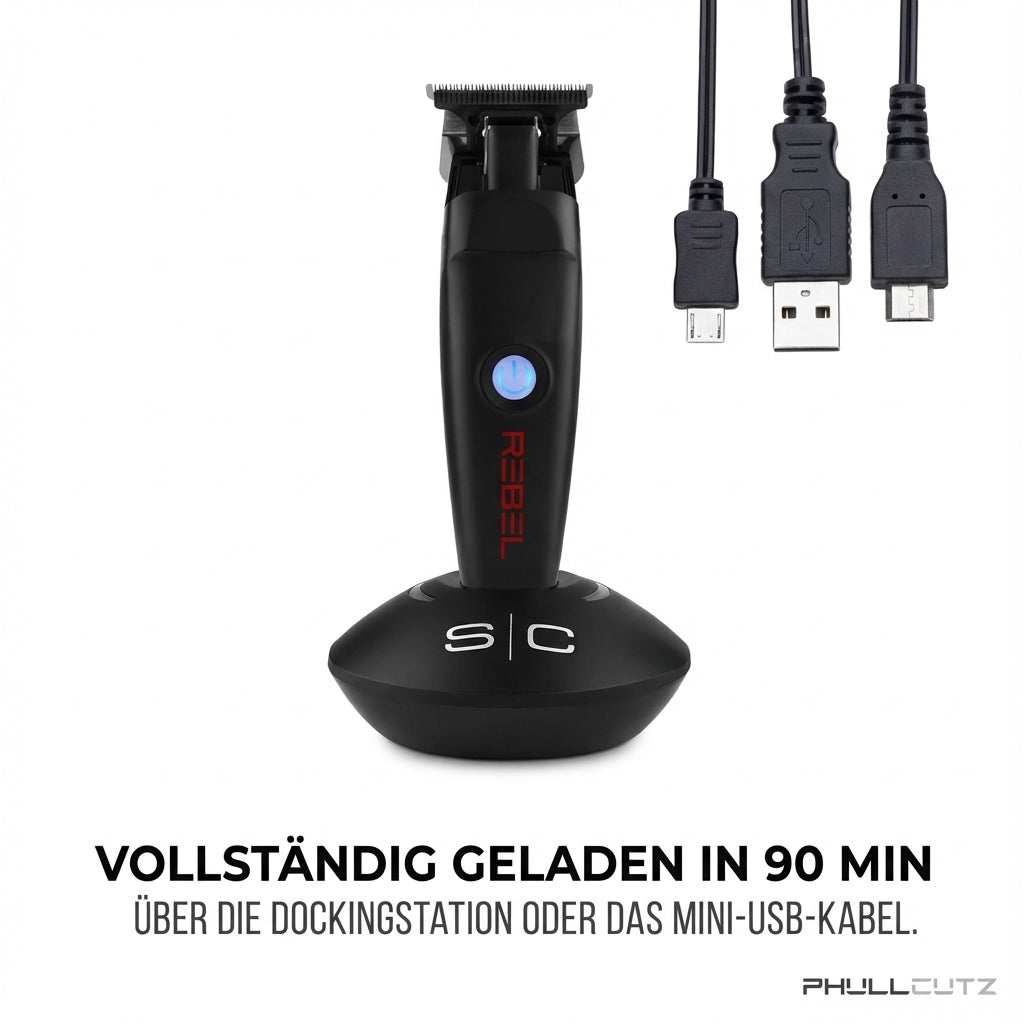 Mit dem Lithium-Ionen-Akku bietet der Rebel Trimmer beeindruckende 3 Stunden kabellose Laufzeit, perfekt für den professionellen Einsatz im Salon, zu Hause oder unterwegs. Die kurze Ladezeit von nur 90 Minuten sorgt dafür, dass du immer bereit für die nächste Herausforderung bist.