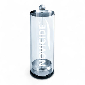 Der Novicide Desinfektionszylinder ist mit einem herausnehmbaren Edelstahlsieb ausgestattet, das dir eine besonders hygienische Handhabung ermöglicht. Du kannst deine Werkzeuge desinfizieren, ohne die Flüssigkeit direkt zu berühren. Der robuste Edelstahldeckel schützt die Desinfektionslösung vor Verunreinigungen und verlängert ihre Nutzungsdauer. Dank des rutschfesten Bodens steht der Zylinder sicher auf jeder Oberfläche, sodass du dich voll und ganz auf deine Arbeit konzentrieren kannst.