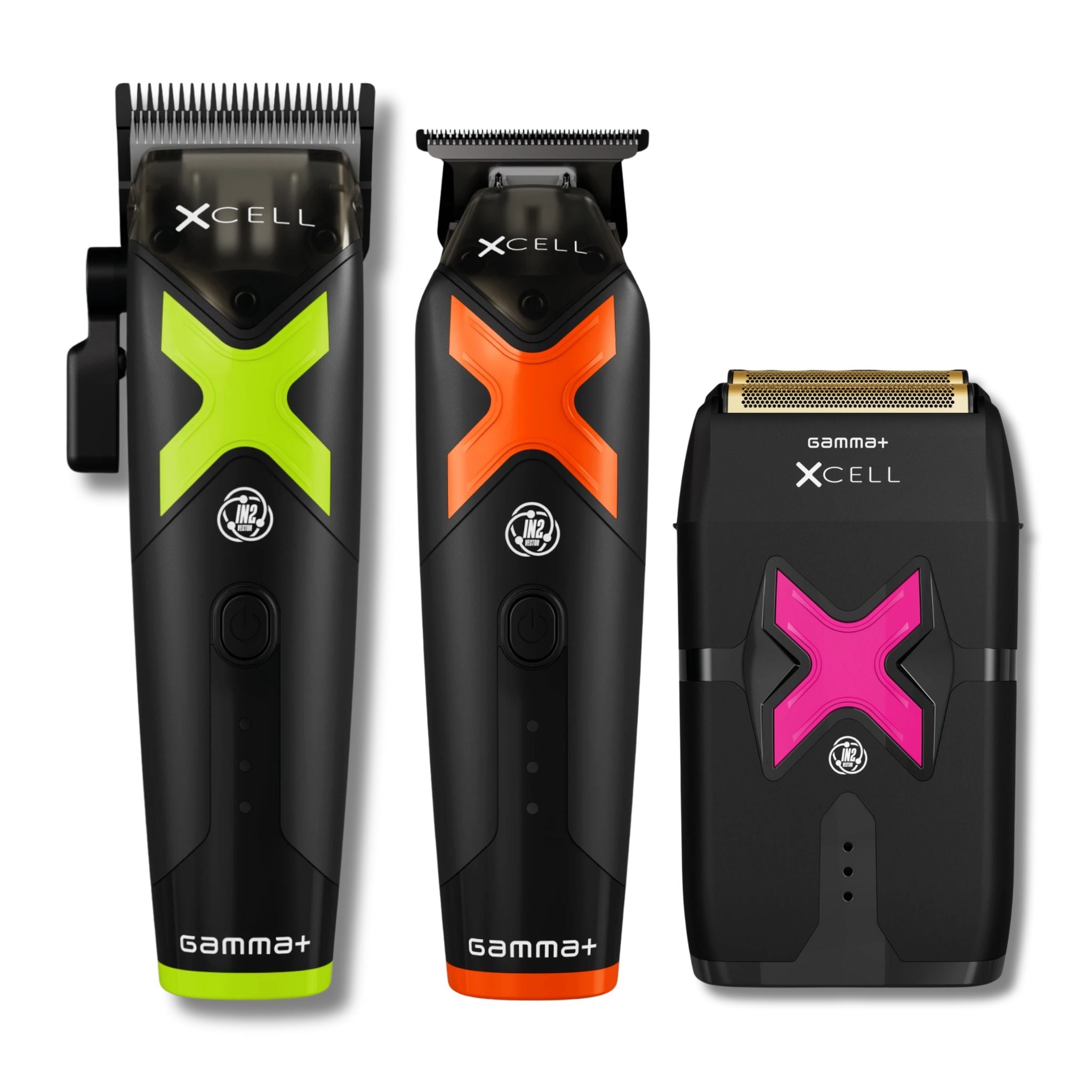 Das Gamma+ XCELL Bundle vereint drei High-Performance-Werkzeuge, die deine Styling-Routine auf ein neues Level heben: den Gamma+ XCELL Clipper, den Gamma+ XCELL Trimmer und den Gamma+ XCELL Shaver. Jedes Gerät ist mit dem innovativen IN2 Vektor-Motor ausgestattet und bietet dir kompromisslose Präzision, starke Leistung sowie ein ergonomisches Design – ideal für Profis und ambitionierte Einsteiger.